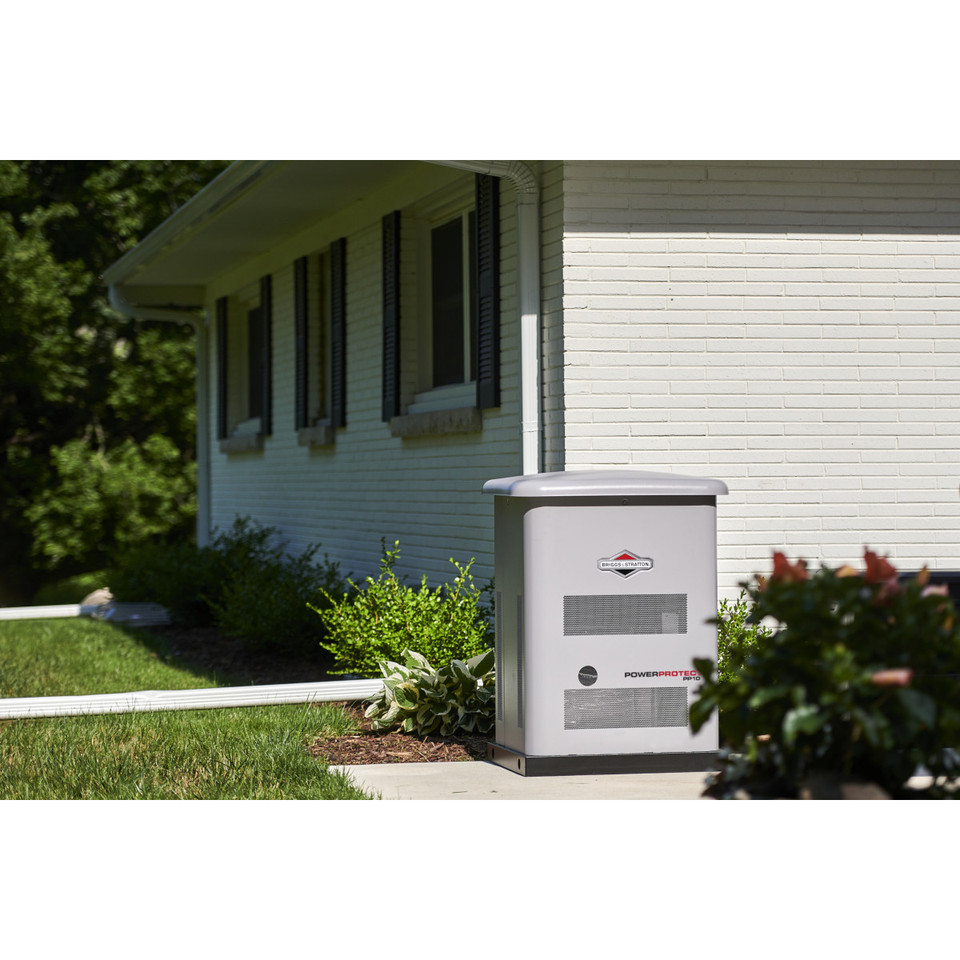 The Briggs and Stratton 10kW Standby Generator fits into the landscape with a size and shape that compares to a central air conditioner—half the size of competing brands. This 40685 10 kW standby generator system includes a 16-Circuit 100-Amp Automatic Transfer Switch—ideal for installations that power selected circuits instead of an entire house.