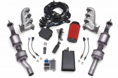 Offered with a wet-sump or dry-sump oiling system, the Chevy E-Rod engine systems include the specially designed engine controller for retro-fit applications and harness needed to get the engine running.