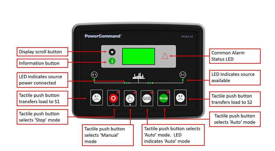 PowerCommand 40 is a microprocessor controller with LCD digital display, a full list of functions, and tactile soft switches for straightforward operation and navigation. Highlighted controls include PC software configuration with 3 phase sensing on both sources. Manual restore to S1, synchronization check, and event logging. The S-6560 Specification Sheet includes all the benefits and features.