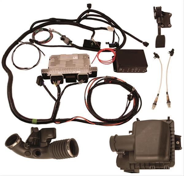 Ford Performance Parts Coyote 5.0L crate engine control packs are designed to properly wire Ford Performance Parts 5.0L modular crate engines. They include a specially-calibrated PCM, an electronic throttle control accelerator pedal, an air intake assembly, an MAF sensor, and all necessary wiring and harness adapters. You can eliminate the complexity of wiring modular 5.0L crate engines with one of these Ford Performance Parts engine control packs.