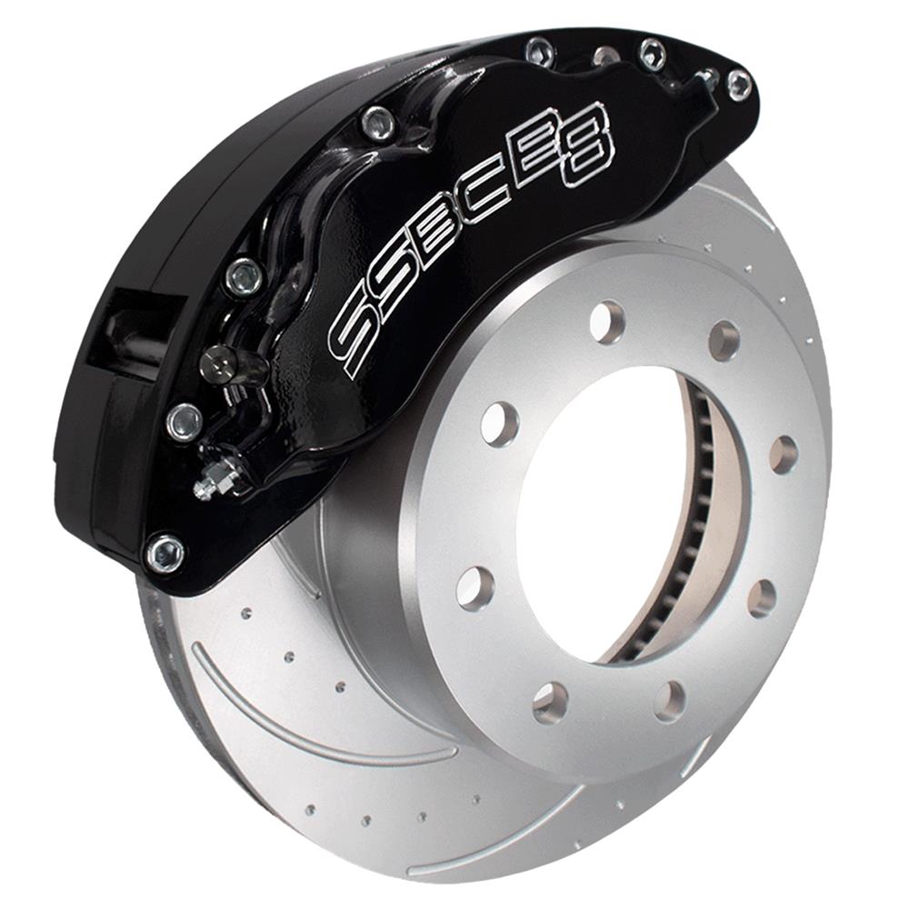 Upgrade your truck to the stopping power of heavy-duty SSBC-USA B8-Barbarian disc brake kits. Featuring SSBC’s direct-fit, 8-piston, CNC-machined billet aluminum B8-Barbarian calipers, the kits also include all the components necessary to provide the halting performance your truck needs to get any job done. The calipers are available with a clear, red, or black anodized finish to provide added durability, along with eye-popping looks.