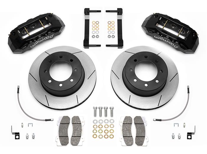 Tactical extreme—Wilwood TX6R Big Brake rear brake kits equip your truck, SUV, or armored rig for consistent stopping power and severe-duty durability under sustained high heat. Ready to bolt on, these pre-emptive kits contain TX6R radial-mount 6-piston calipers and massive 15 in. to 16 in. GT-60 directional vane Spec-37 alloy rotors. Radial-mount caliper brackets and all the necessary hardware to complete the installation are also included. TX6R rear kits replace your factory disc brakes and use the OE parking brake assembly as a complement to your front Big Brake upgrades. Your mission for braking performance has now been optimized with Wilwood TX6R Big Brake rear brake kits.